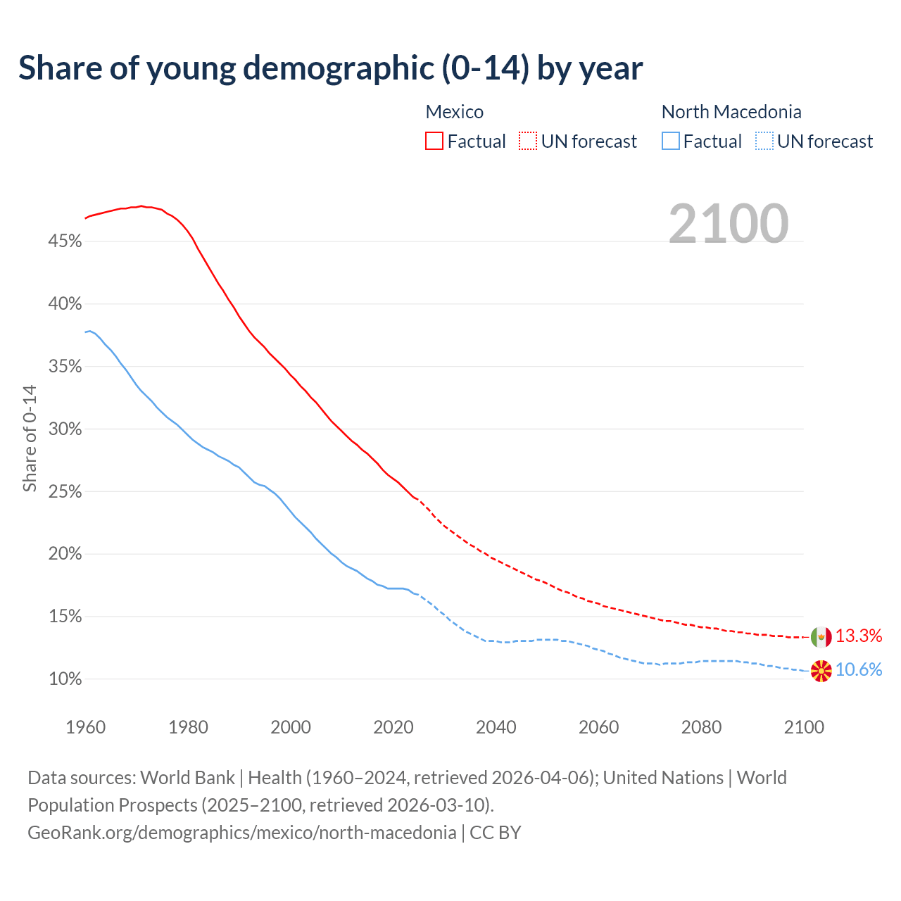 - The share of young demographic (0-15 years old) in Mexico is 24.5% vs 16.8% in North Macedonia.