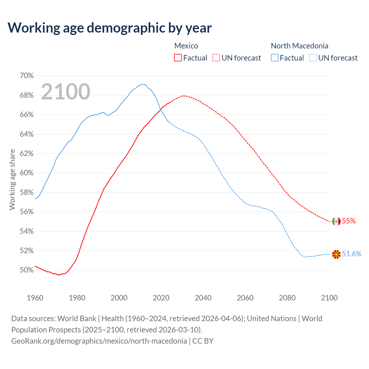 - Mexico has 89.6M working age adults (aged 15-64) vs 1.18M in North Macedonia.