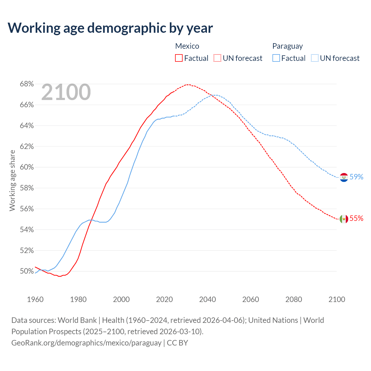 - Mexico has 89.6M working age adults (aged 15-64) vs 4.62M in Paraguay.