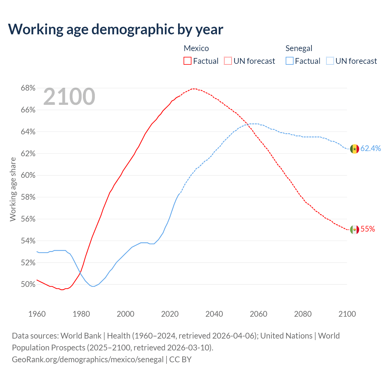 - Mexico has 89.6M working age adults (aged 15-64) vs 11.3M in Senegal.