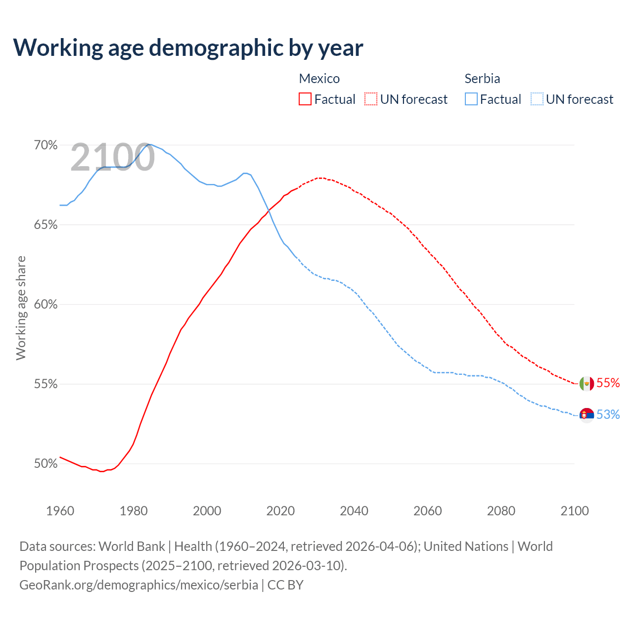 - Mexico has 89.6M working age adults (aged 15-64) vs 4.09M in Serbia.