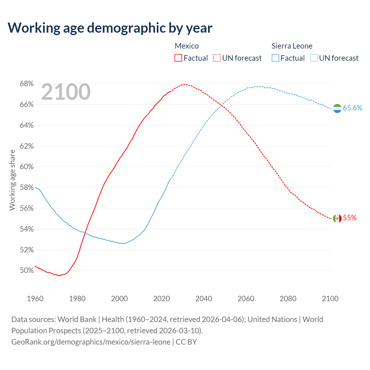 - Mexico has 89.6M working age adults (aged 15-64) vs 5.31M in Sierra Leone.