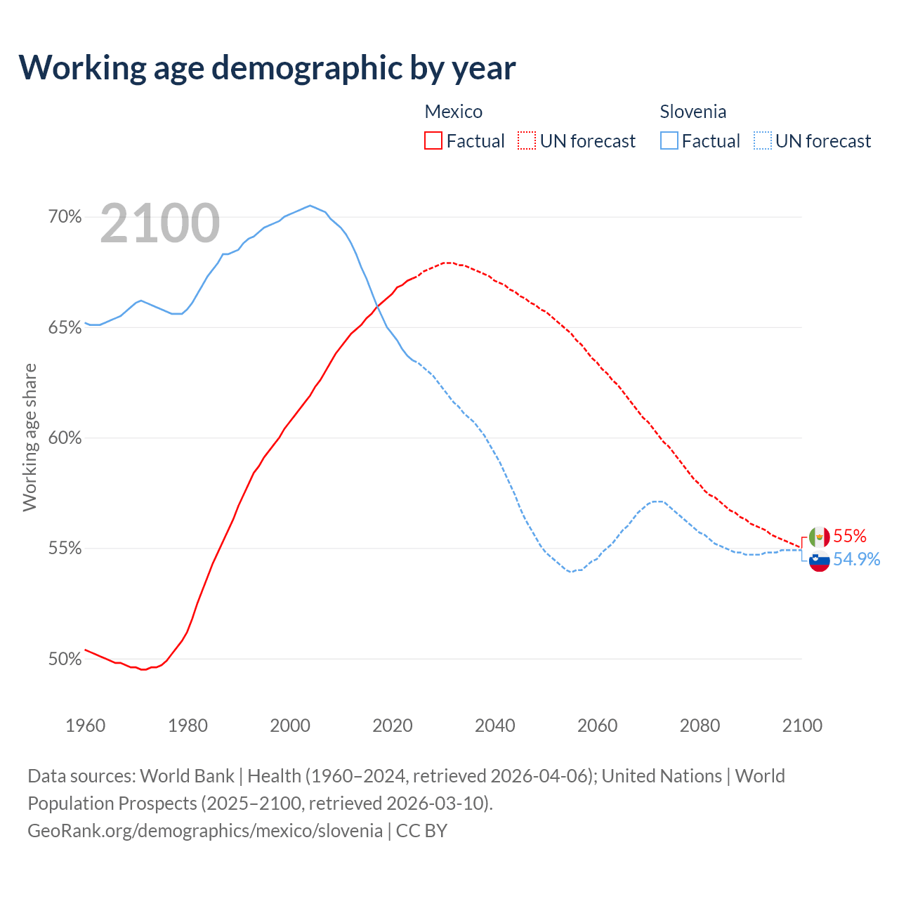 - Mexico has 89.6M working age adults (aged 15-64) vs 1.35M in Slovenia.