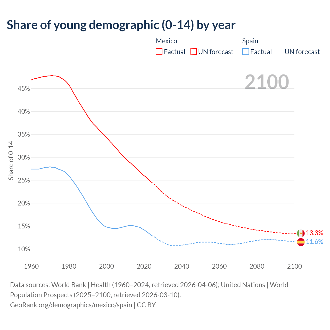 - The total fertility rate is 1.91 in Mexico compared to 1.12 in Spain.
