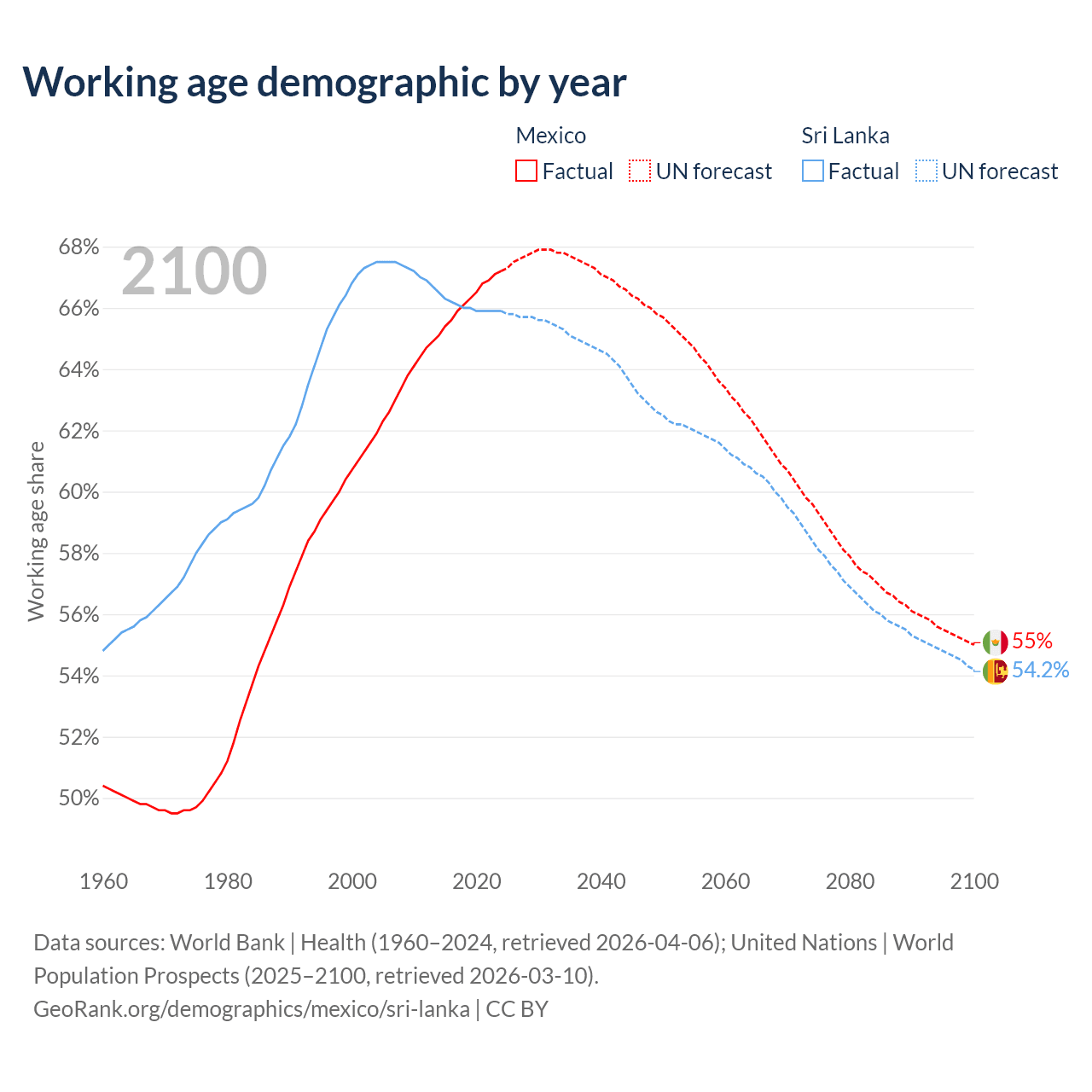- Mexico has 89.6M working age adults (aged 15-64) vs 14.6M in Sri Lanka.