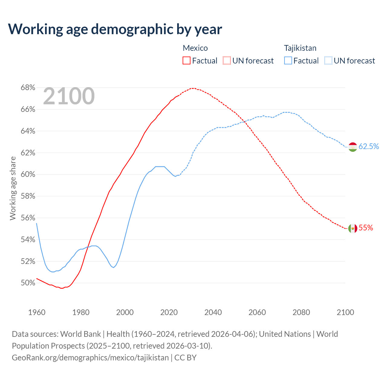 - Mexico has 89.6M working age adults (aged 15-64) vs 6.61M in Tajikistan.