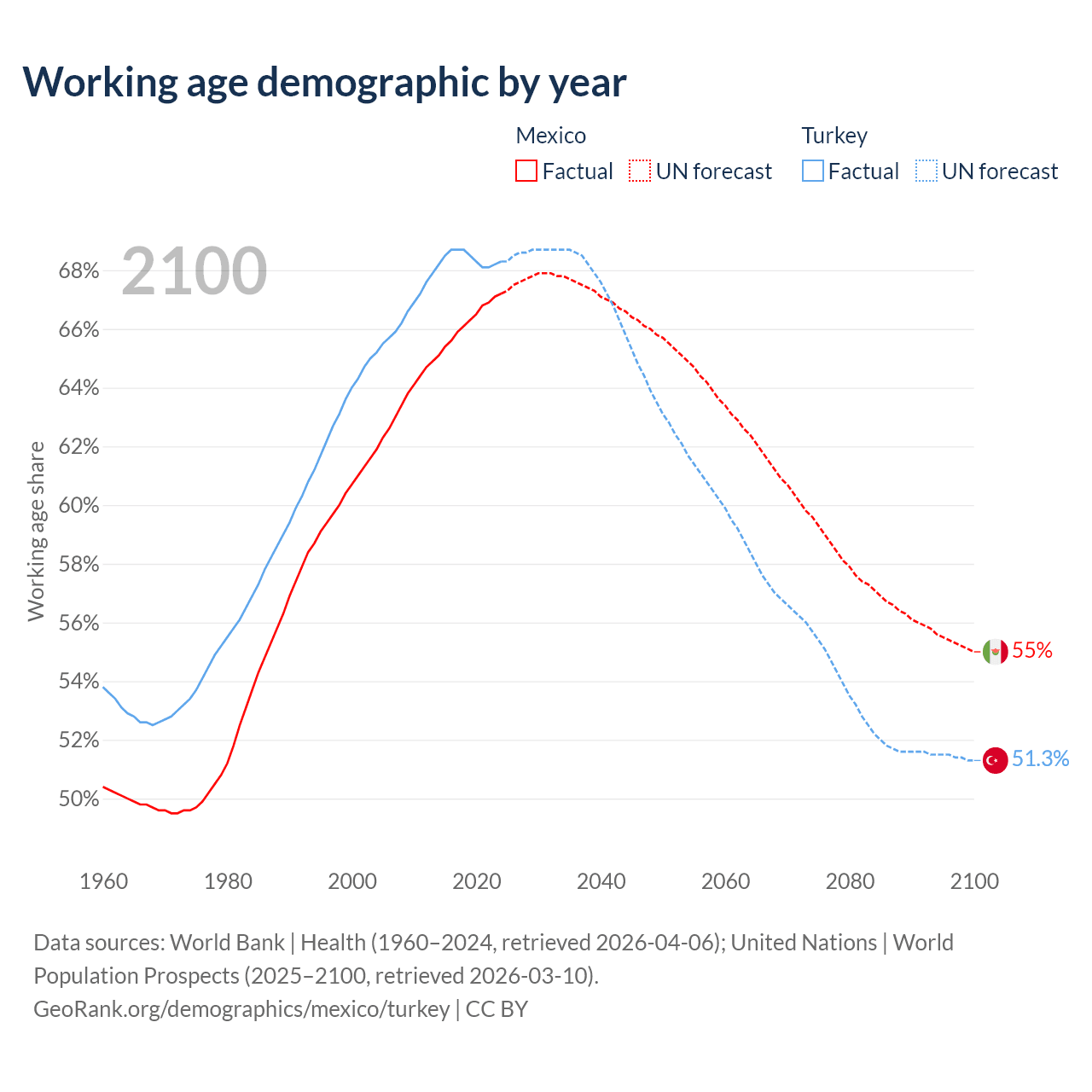 - Mexico has 89.6M working age adults (aged 15-64) vs 58.7M in Turkey.