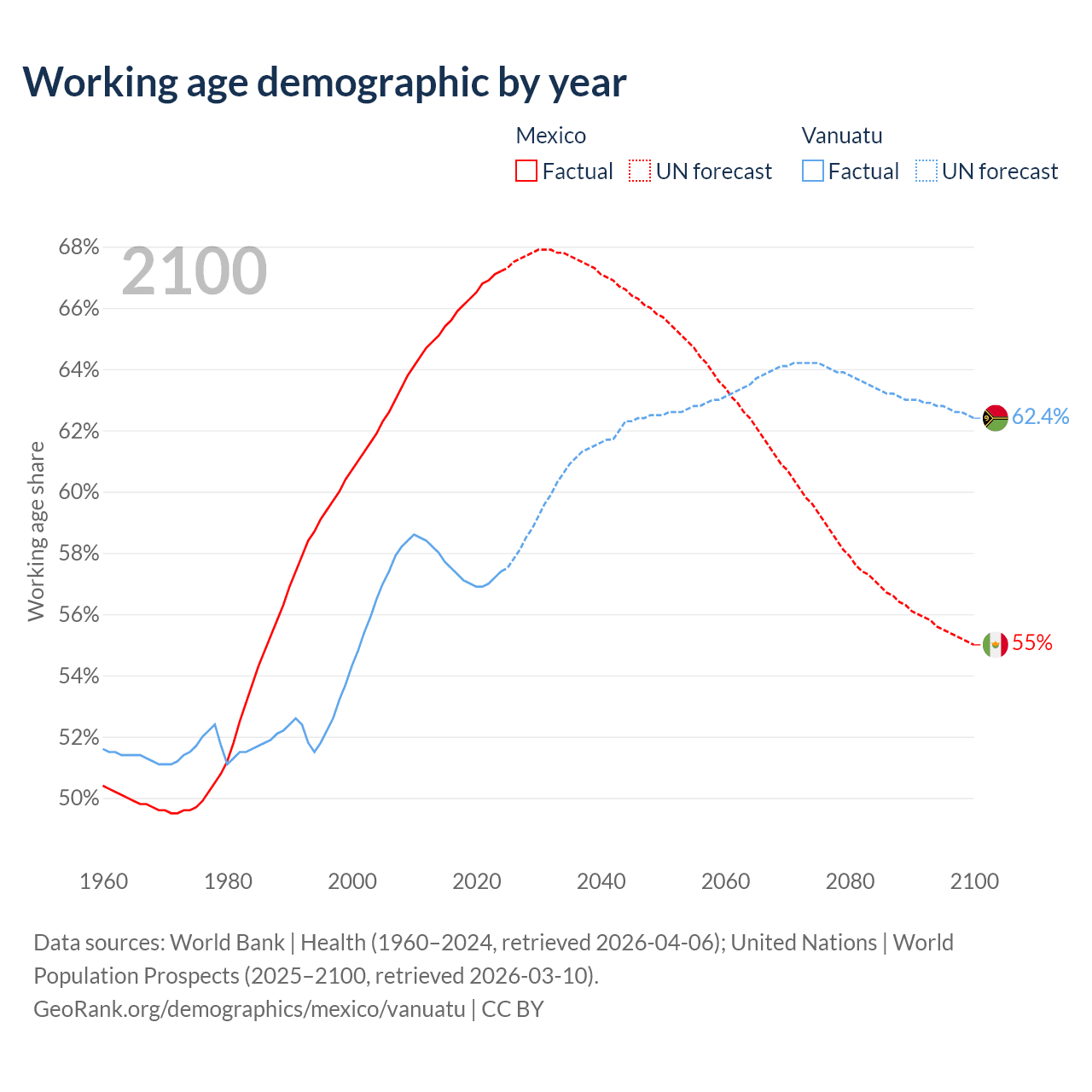 - Mexico has 89.6M working age adults (aged 15-64) vs 198K in Vanuatu.