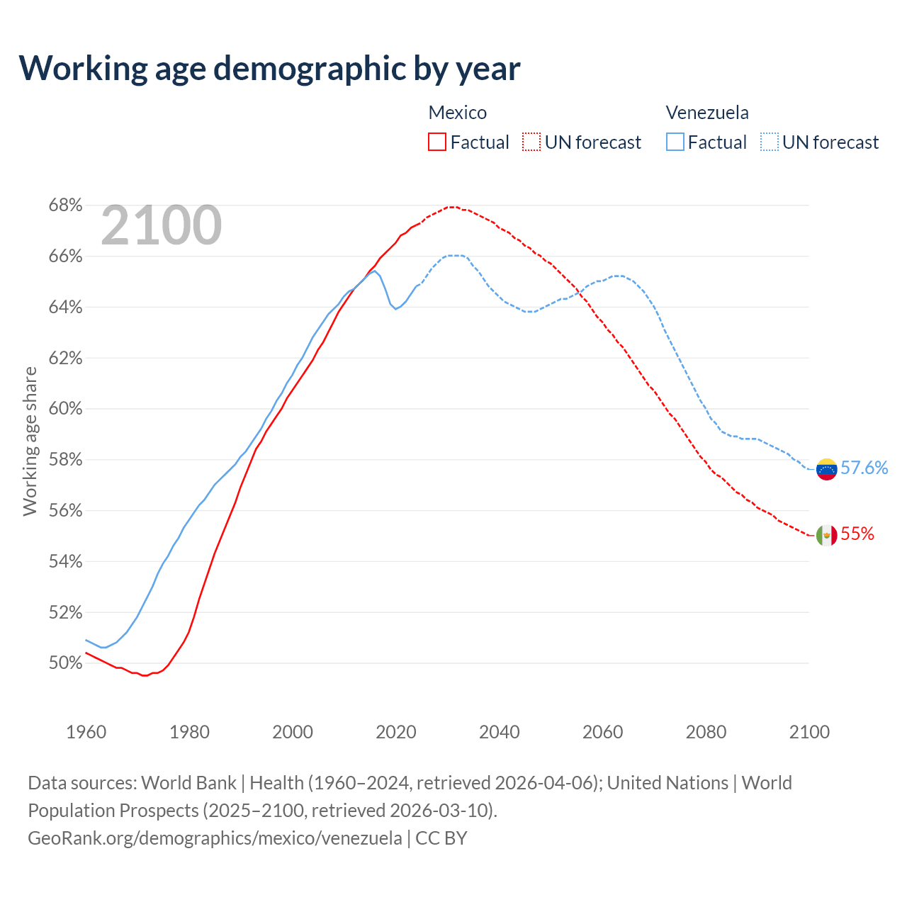 - Mexico has 89.6M working age adults (aged 15-64) vs 18.6M in Venezuela.