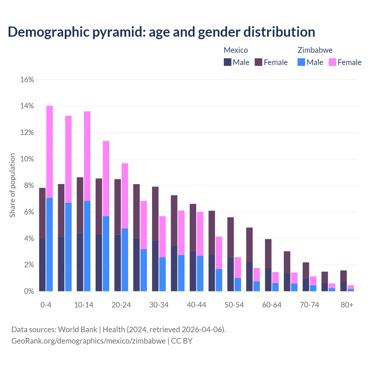 Demographics of Mexico compared to Zimbabwe: