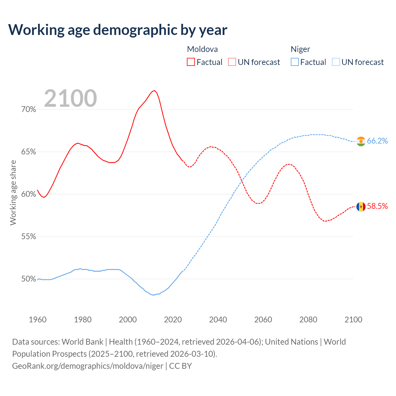- Moldova has 1.5M working age adults (aged 15-64) vs 14.8M in Niger.