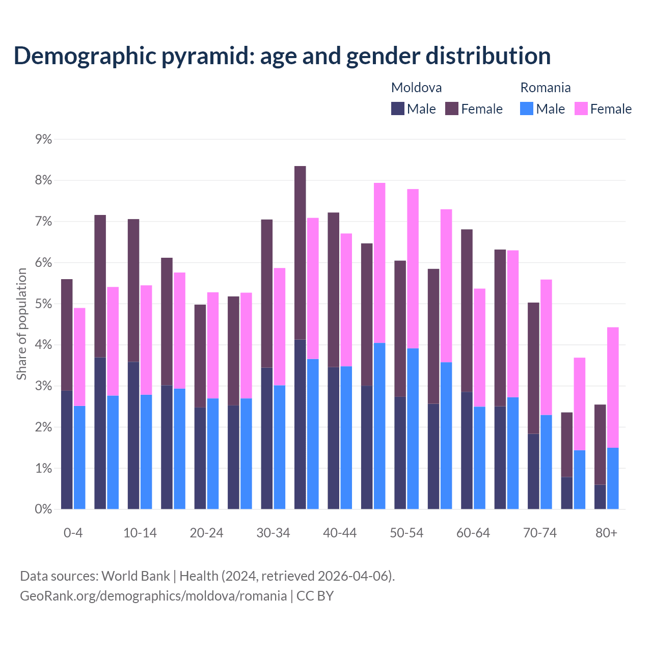 Demographics of Moldova compared to Romania: