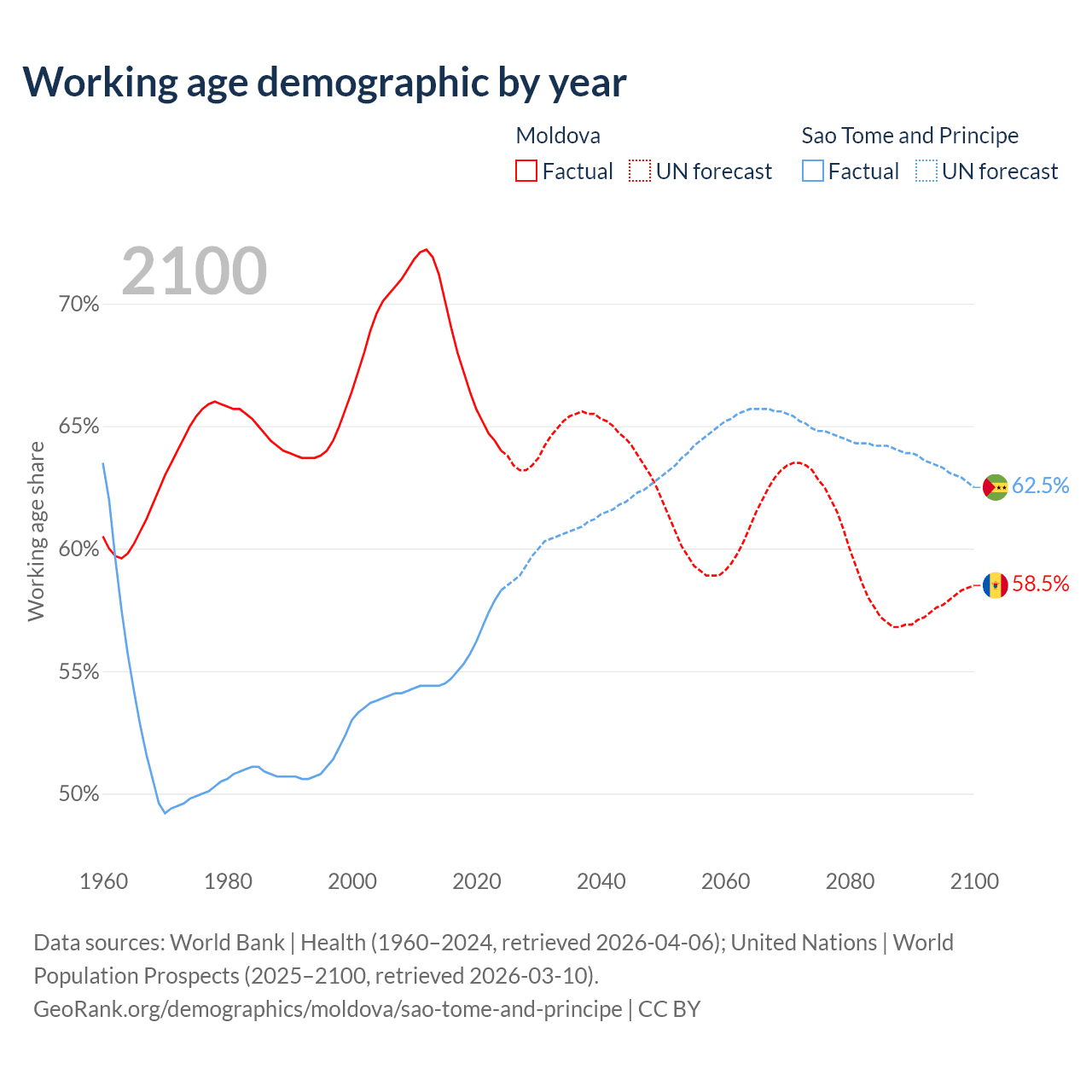 - Moldova has 1.5M working age adults (aged 15-64) vs 144K in Sao Tome and Principe.