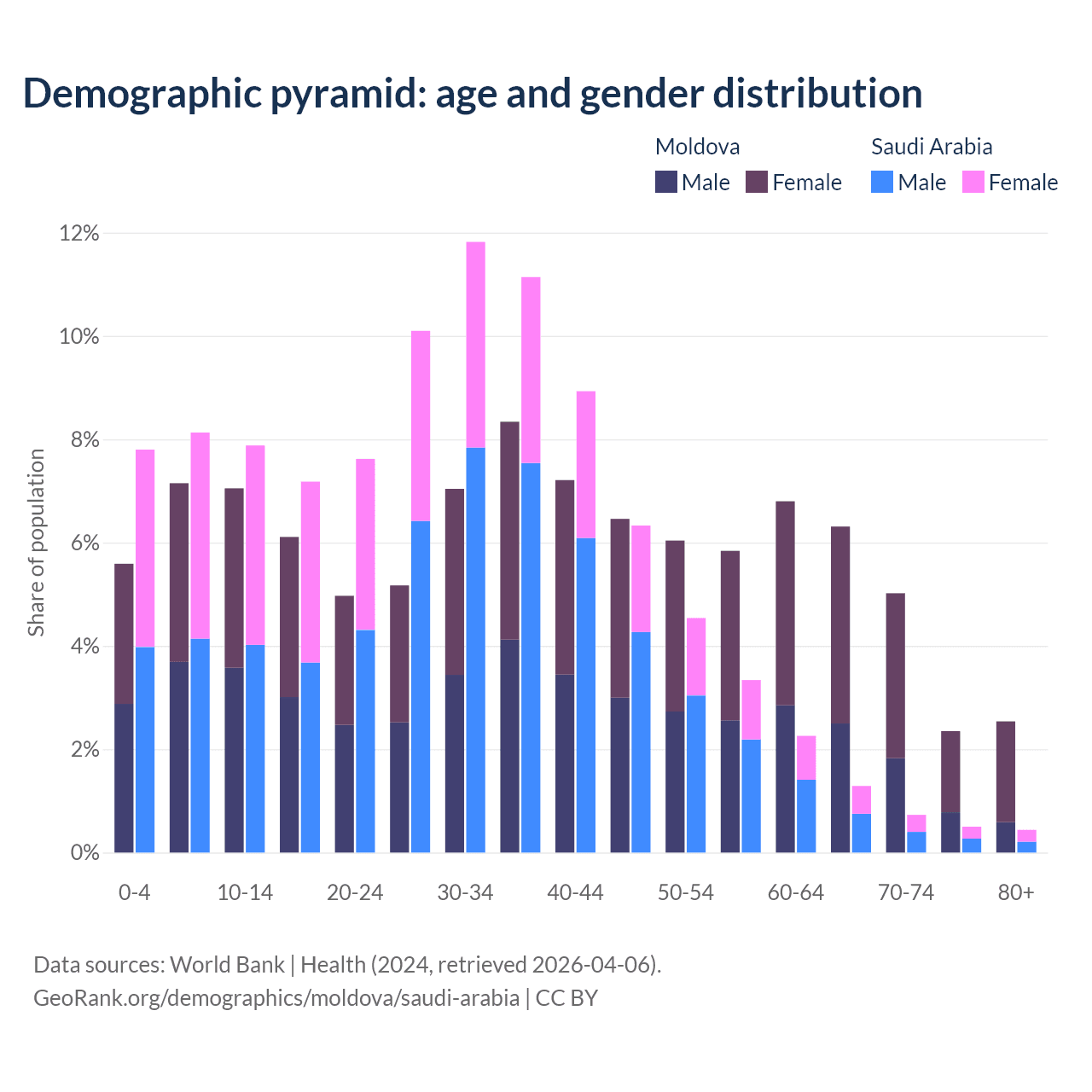 Demographics of Moldova compared to Saudi Arabia: