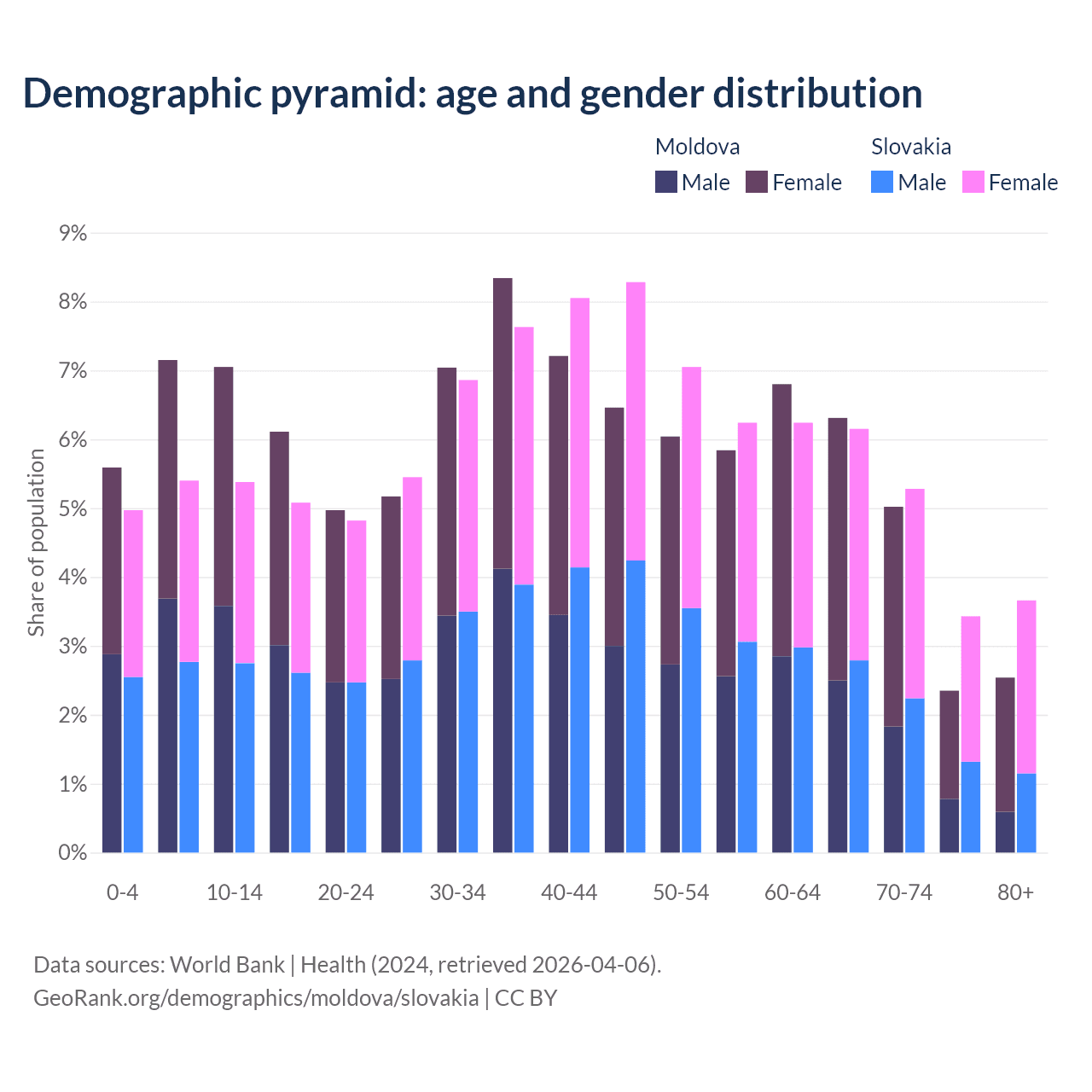 Demographics of Moldova compared to Slovakia: