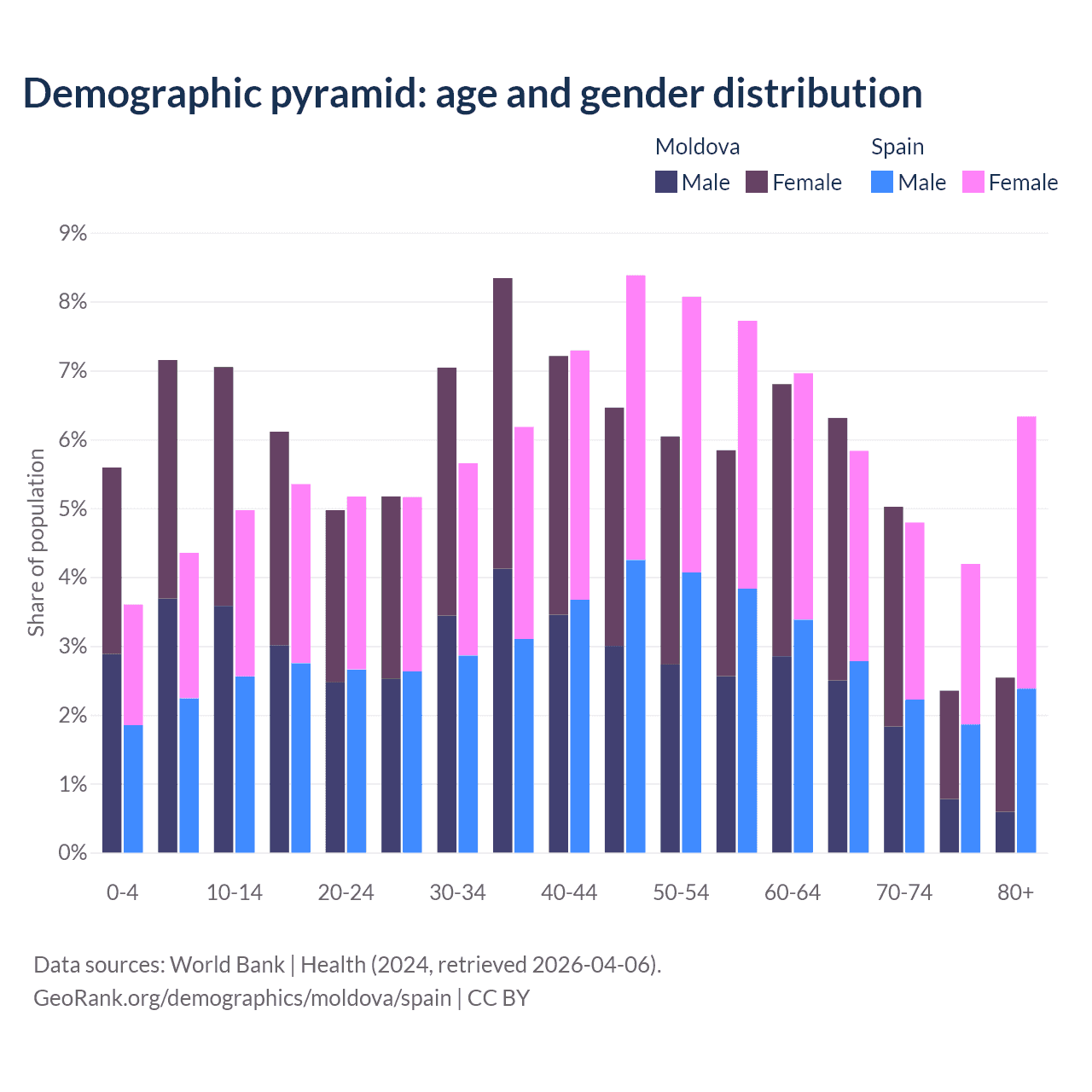 Demographics of Moldova compared to Spain:
