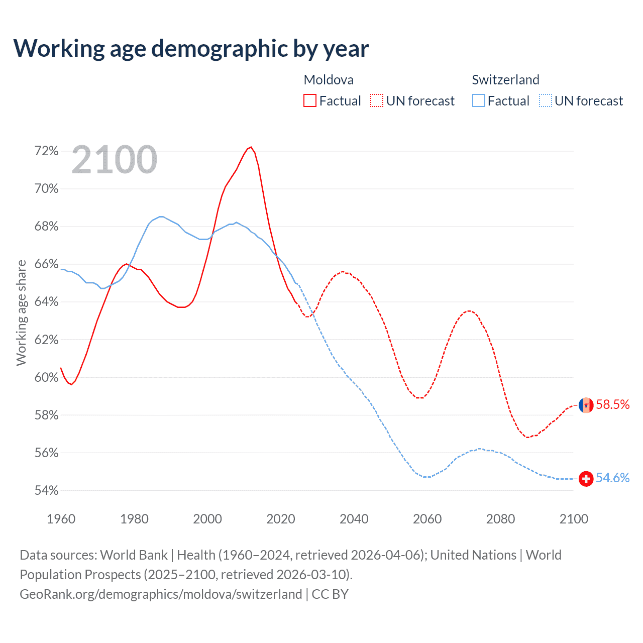 - Moldova has 1.5M working age adults (aged 15-64) vs 5.92M in Switzerland.