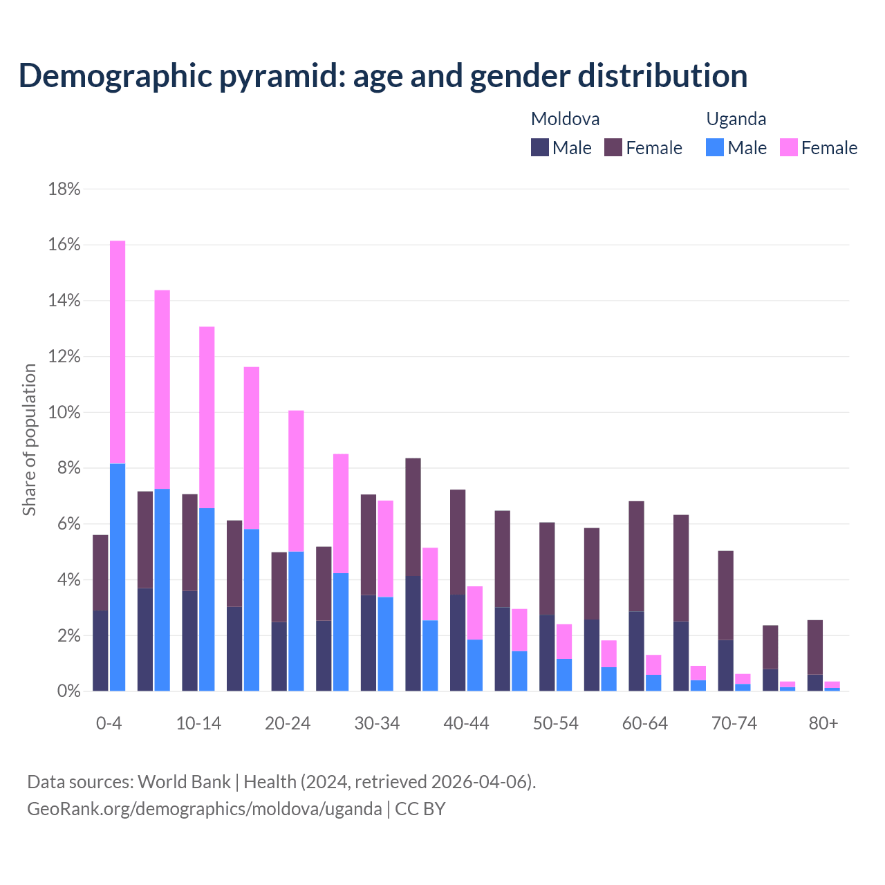 Demographics of Moldova compared to Uganda: