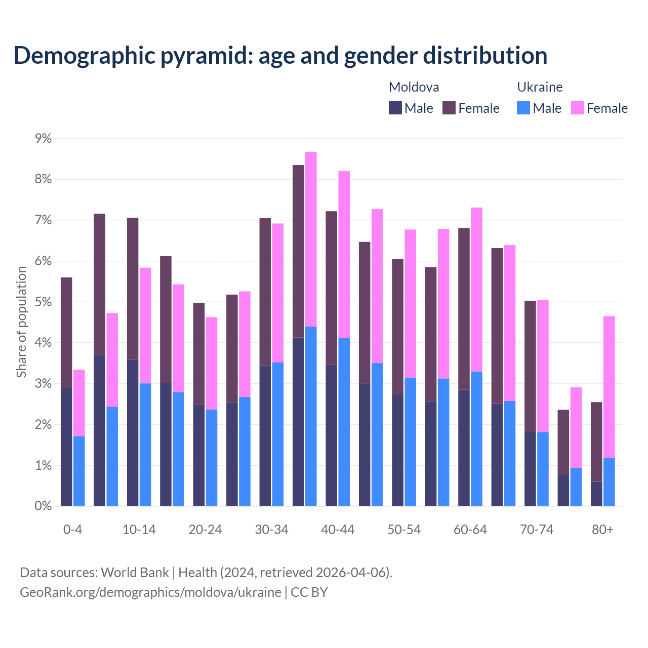 Demographics of Moldova compared to Ukraine: