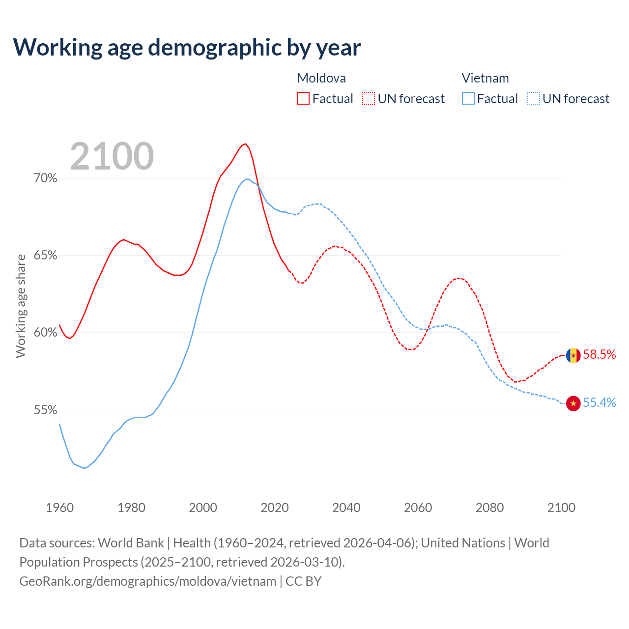 - Moldova has 1.5M working age adults (aged 15-64) vs 69.3M in Vietnam.