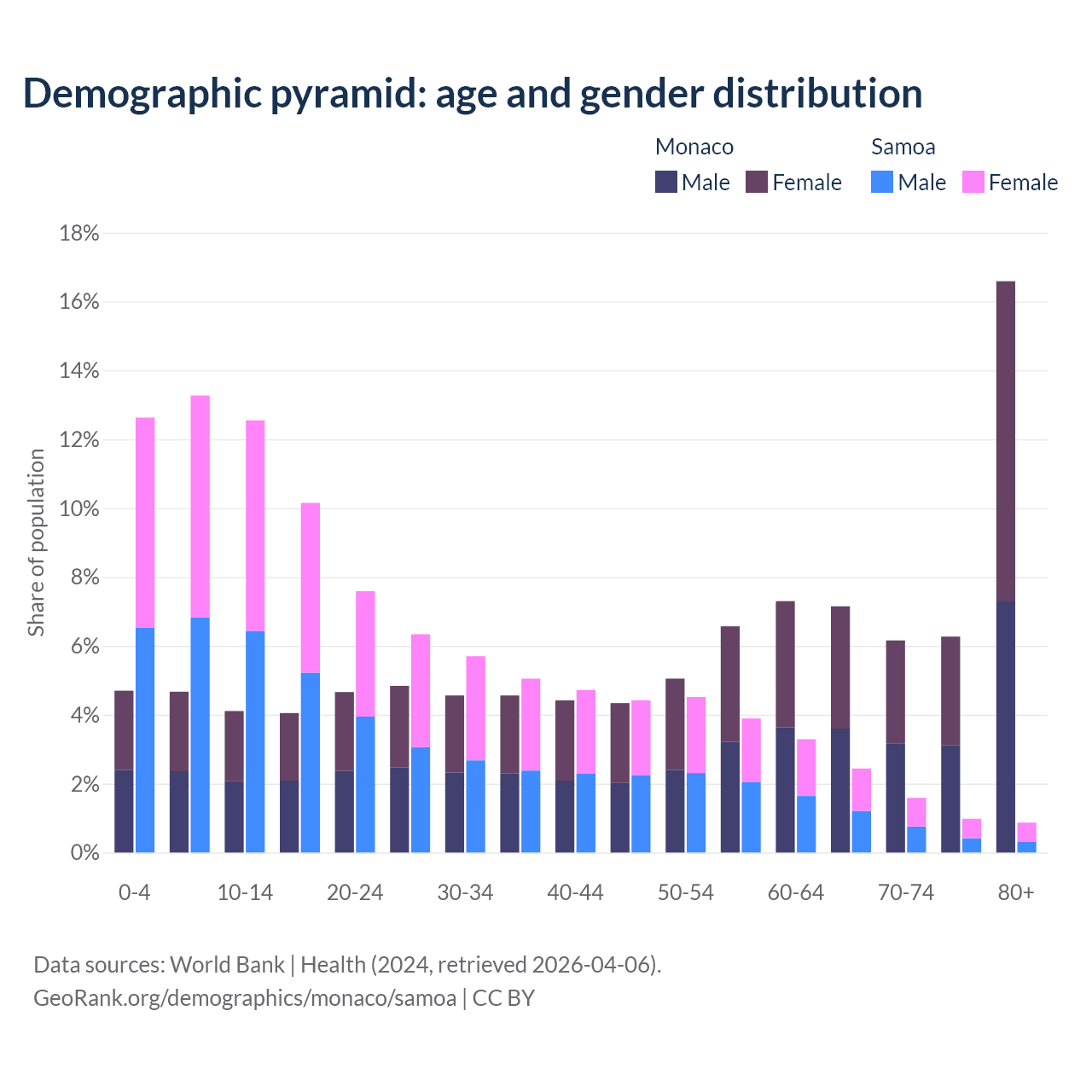Demographics of Monaco compared to Samoa: