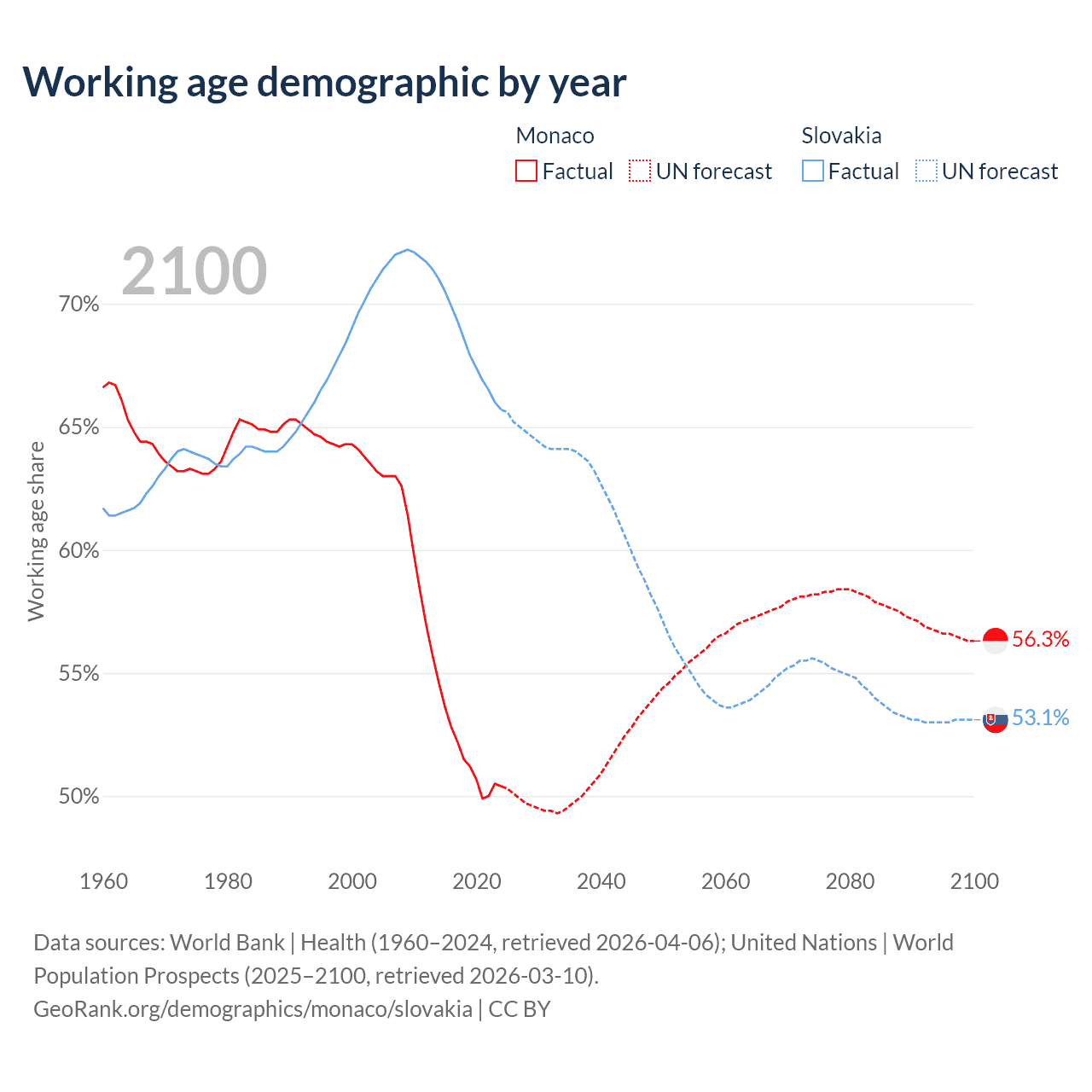 - Monaco has 19.2K working age adults (aged 15-64) vs 3.52M in Slovakia.