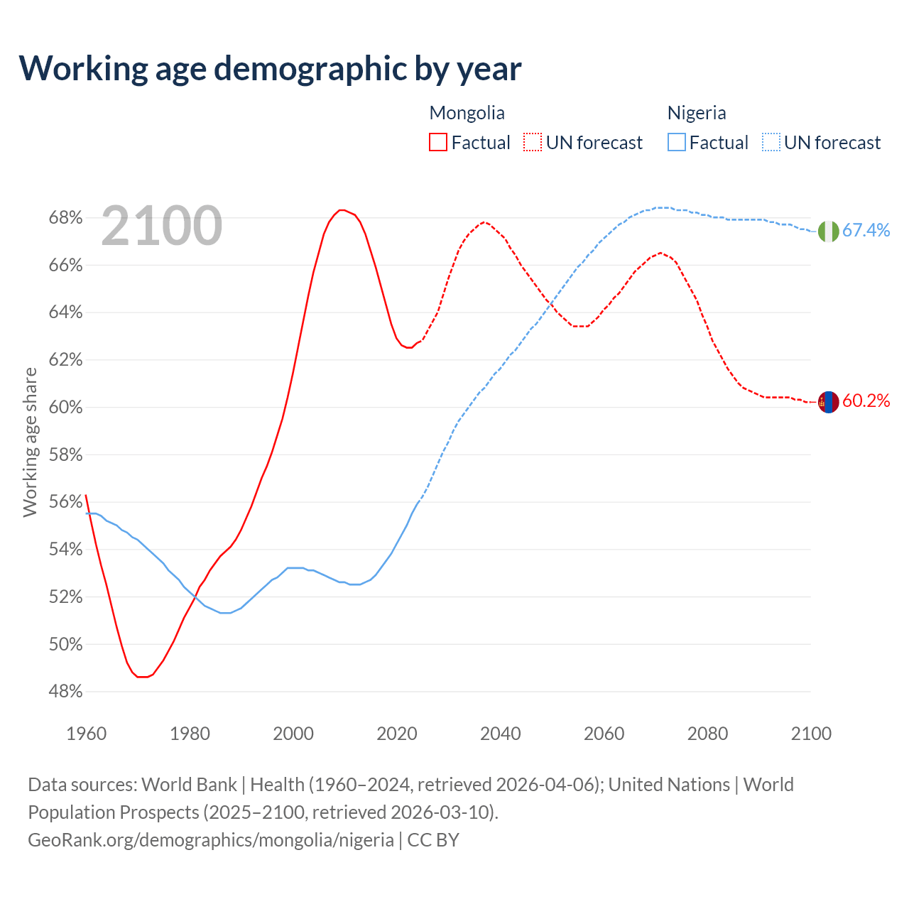 - Mongolia has 2.27M working age adults (aged 15-64) vs 136M in Nigeria.