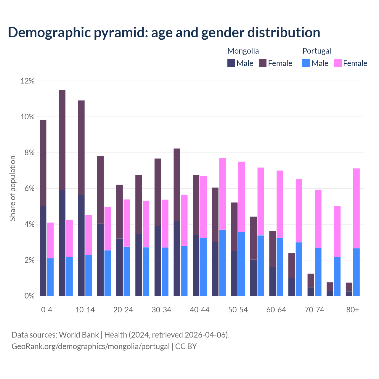 Demographics of Mongolia compared to Portugal: