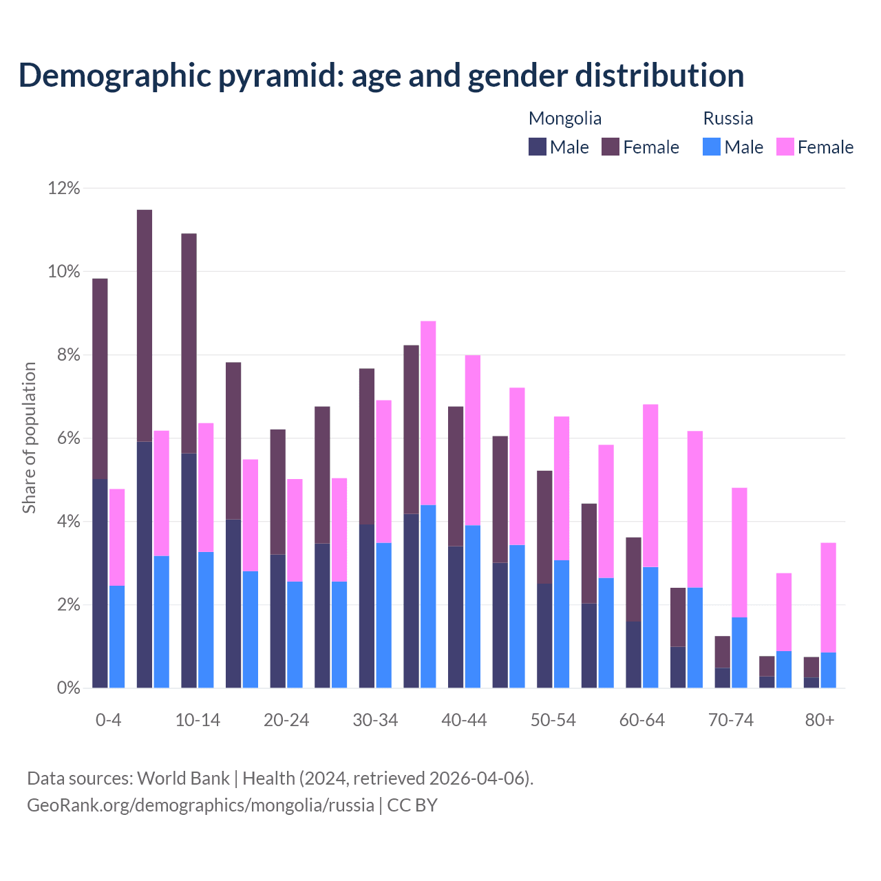 Demographics of Mongolia compared to Russia: