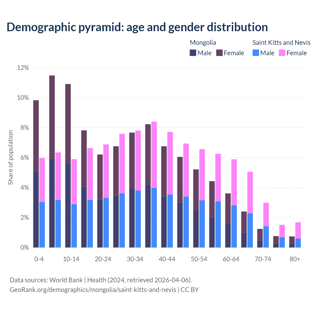 Demographics of Mongolia compared to Saint Kitts and Nevis: