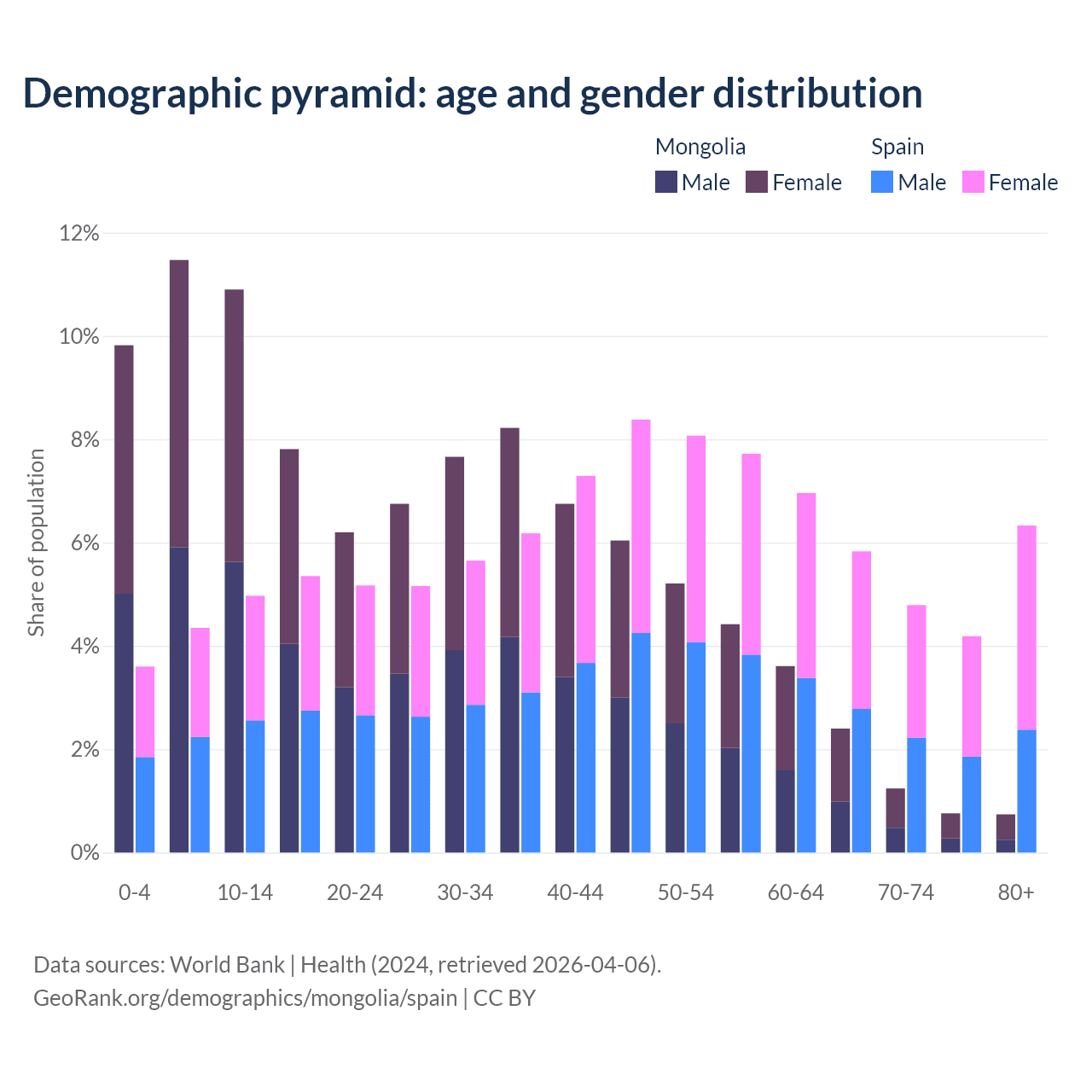 Demographics of Mongolia compared to Spain:
