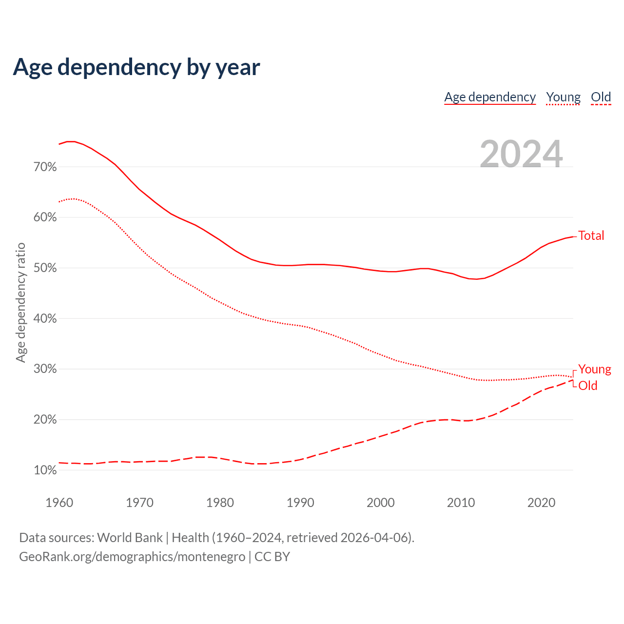 Data sources: World Bank | Health (1960–2024, retrieved 2026-04-06); U.S. Census Bureau (1960–2024, retrieved 2026-02-08).