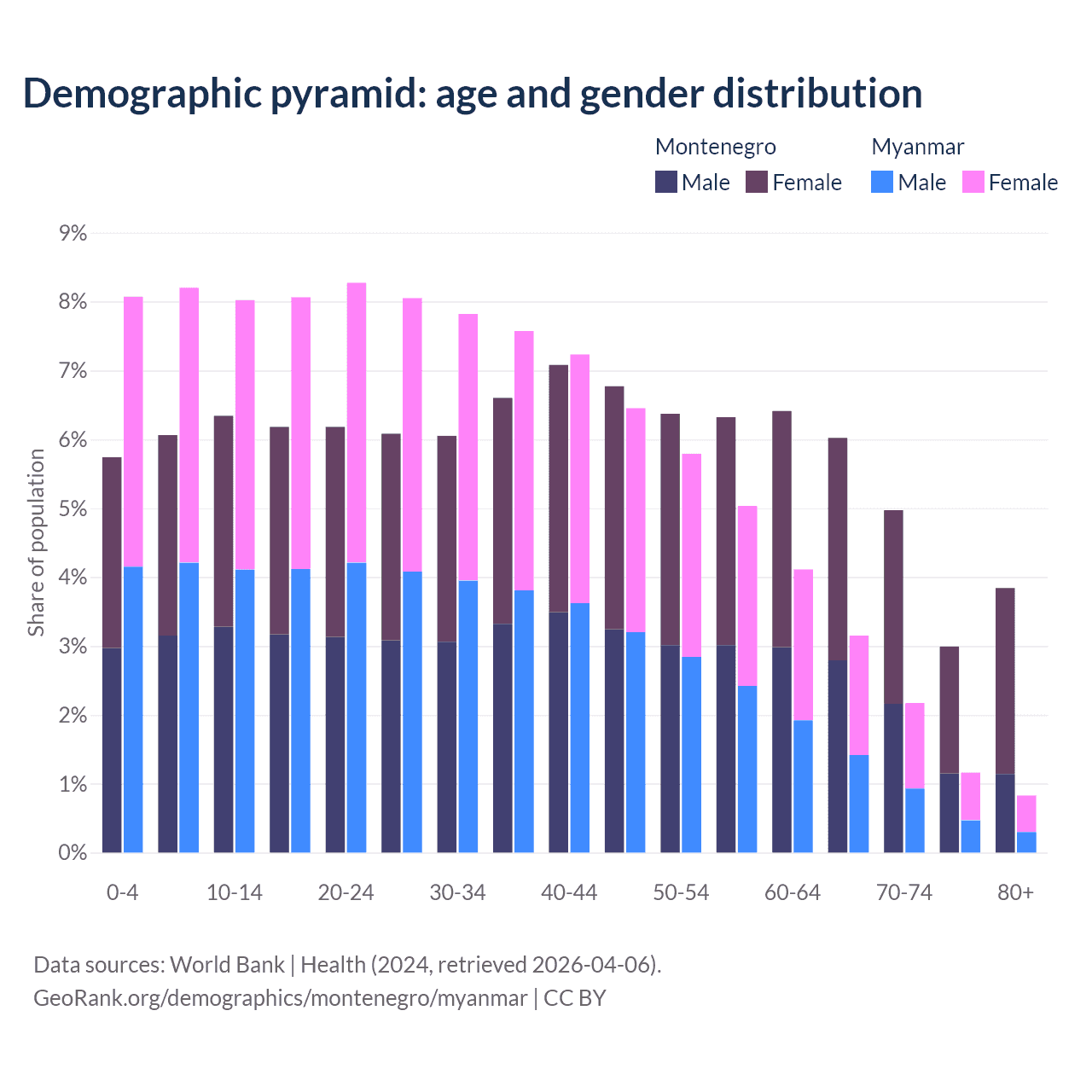 Demographics of Montenegro compared to Myanmar: