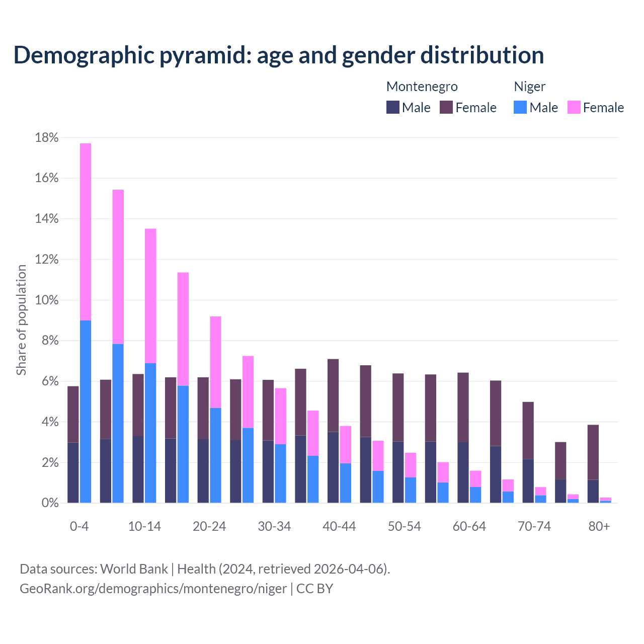 Demographics of Montenegro compared to Niger: