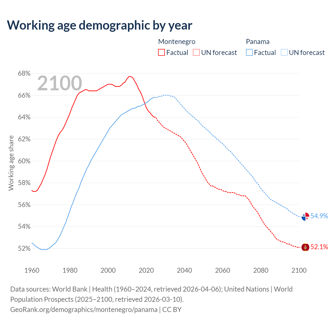 - Montenegro has 392K working age adults (aged 15-64) vs 3.05M in Panama.