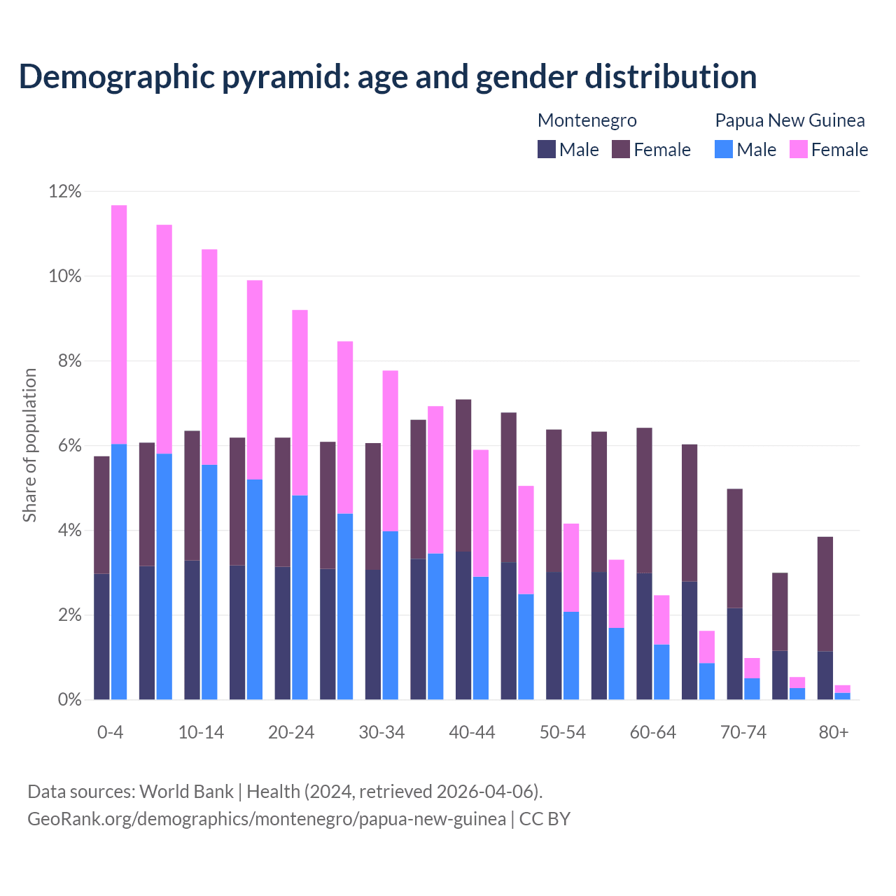 Demographics of Montenegro compared to Papua New Guinea: