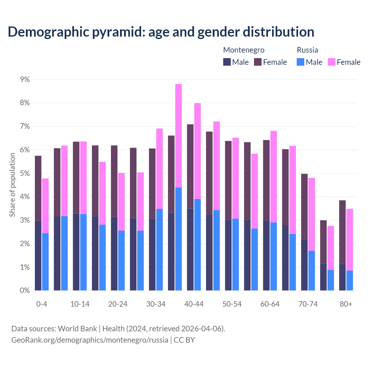 Demographics of Montenegro compared to Russia: