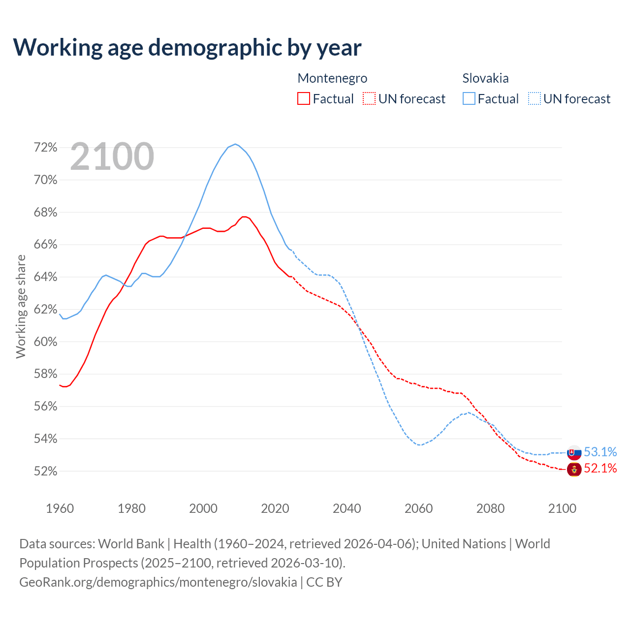 - Montenegro has 392K working age adults (aged 15-64) vs 3.52M in Slovakia.