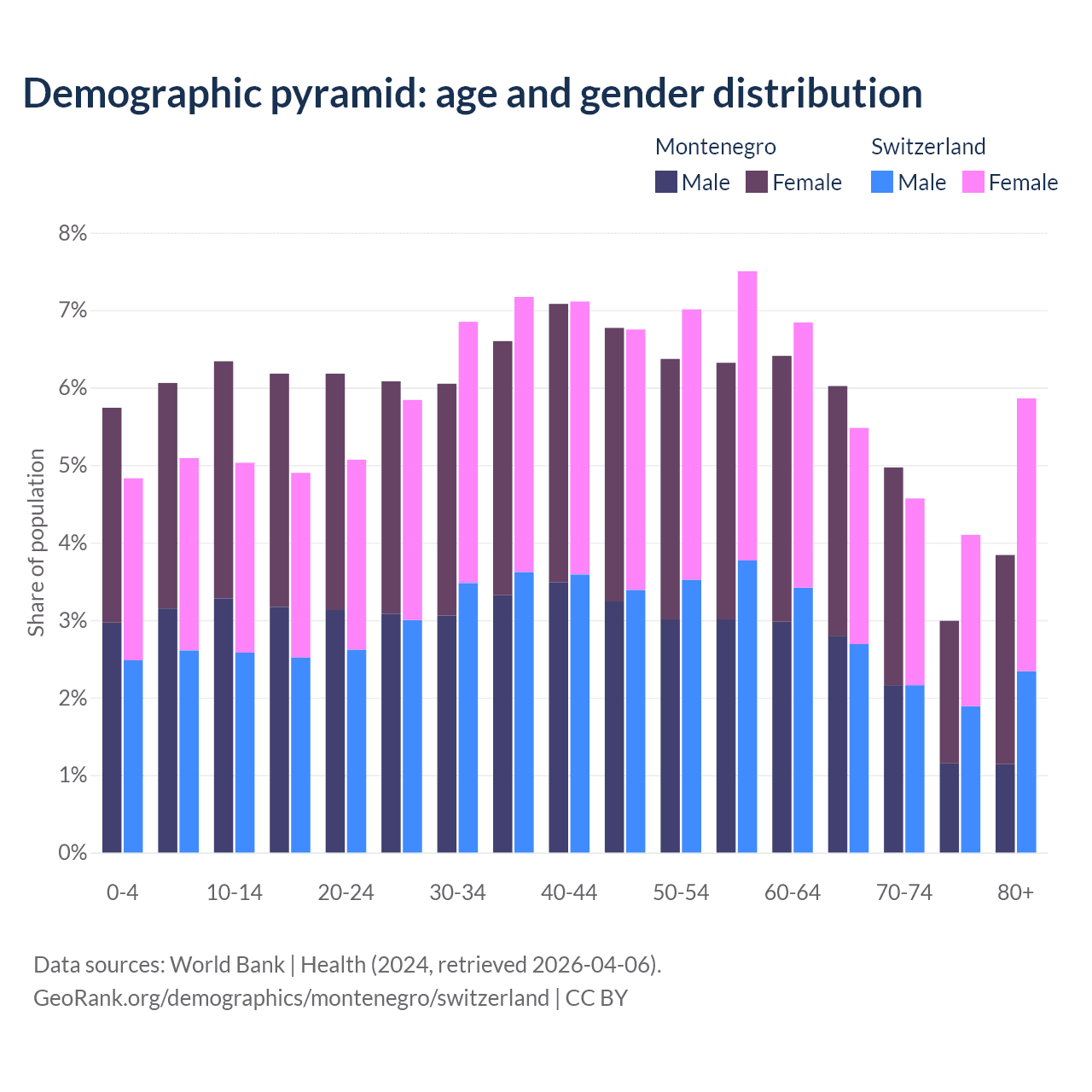 Demographics of Montenegro compared to Switzerland: