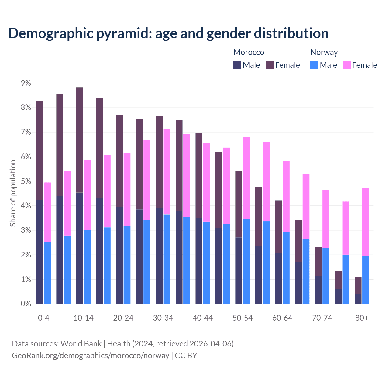 Demographics of Morocco compared to Norway: