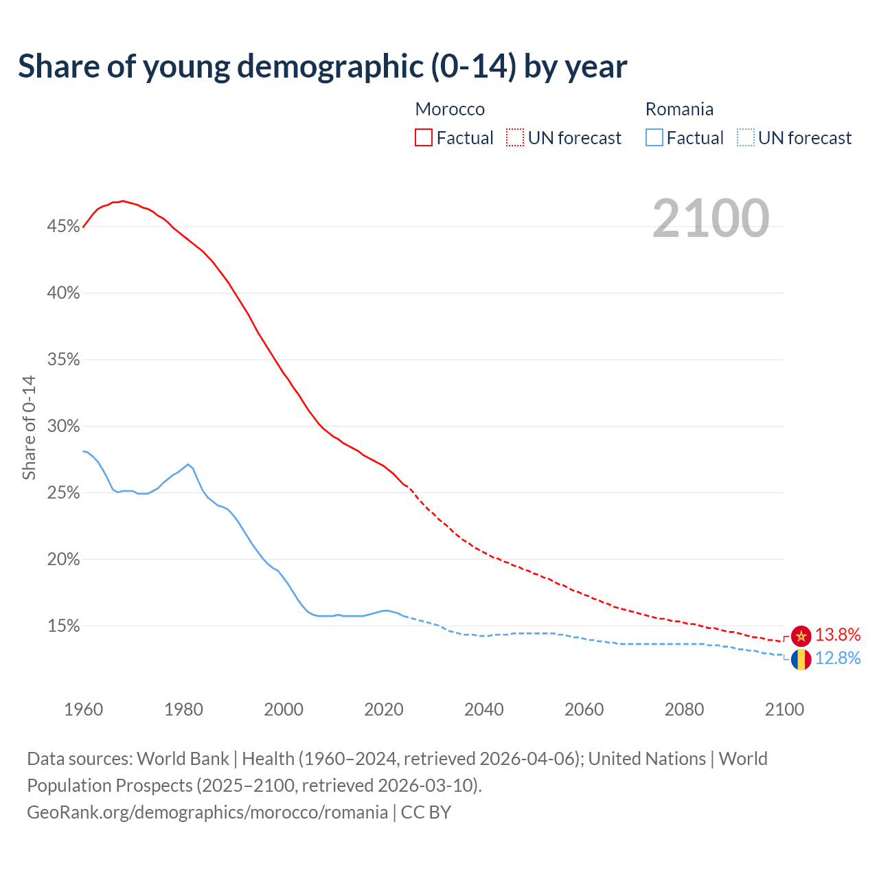 - The total fertility rate is 2.23 in Morocco compared to 1.71 in Romania.