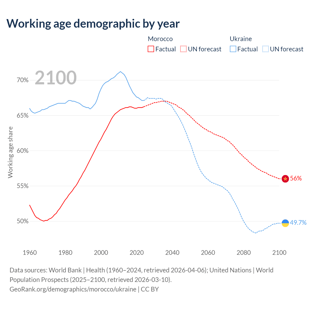 - Morocco has 25.7M working age adults (aged 15-64) vs 26.9M in Ukraine.
