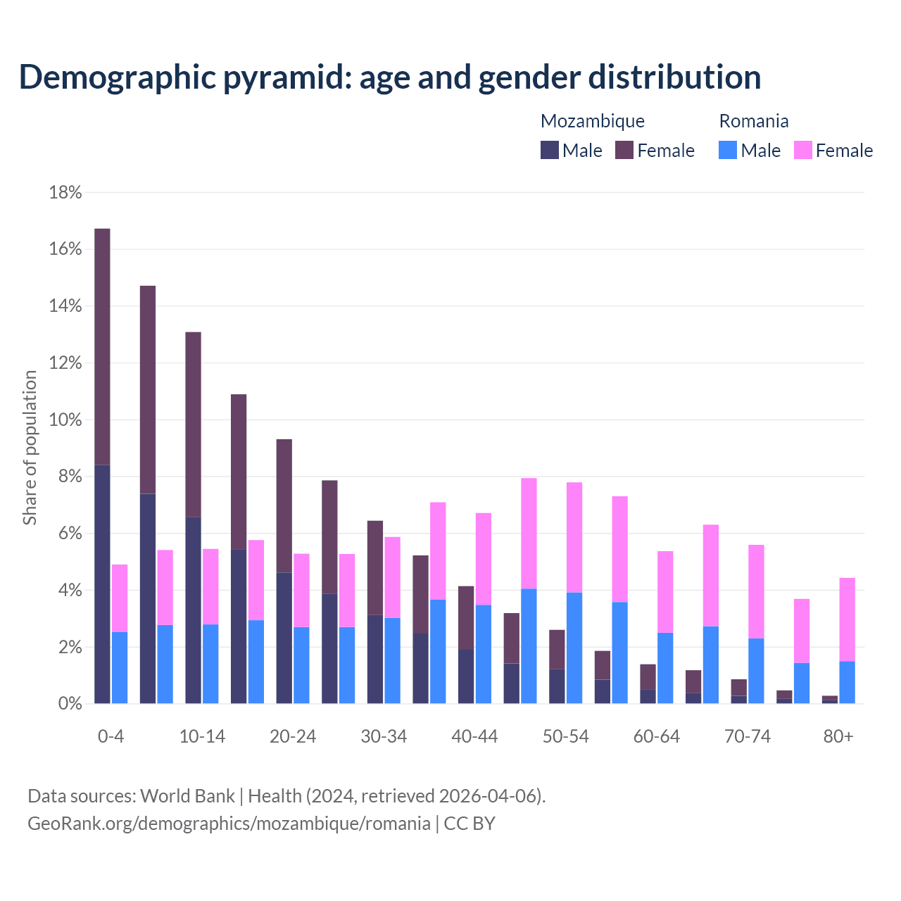 Demographics of Mozambique compared to Romania: