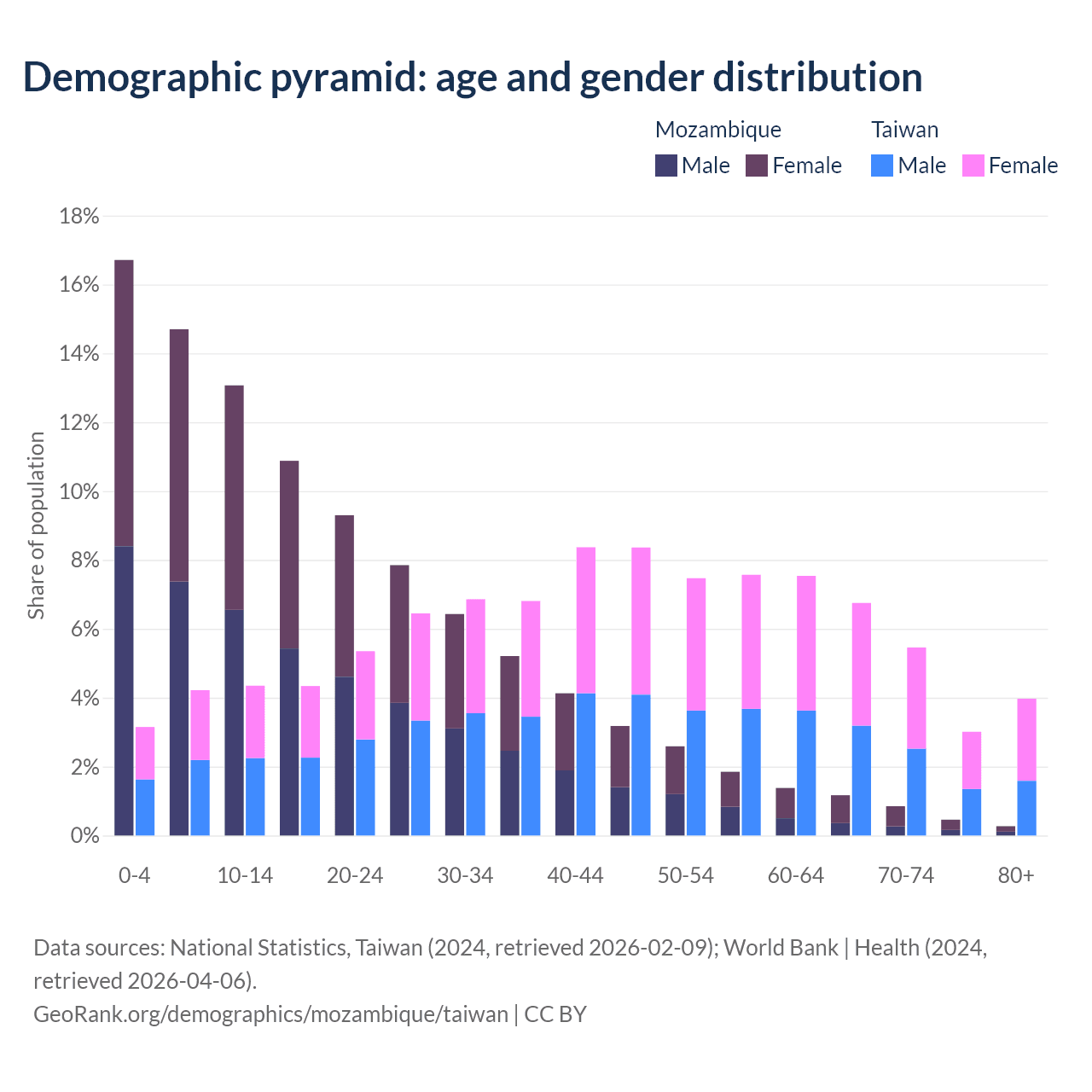 Demographics of Mozambique compared to Taiwan: