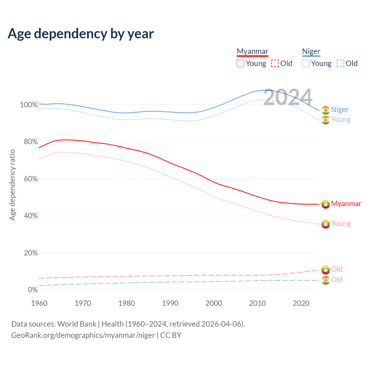 Demographics of Myanmar compared to Niger:
