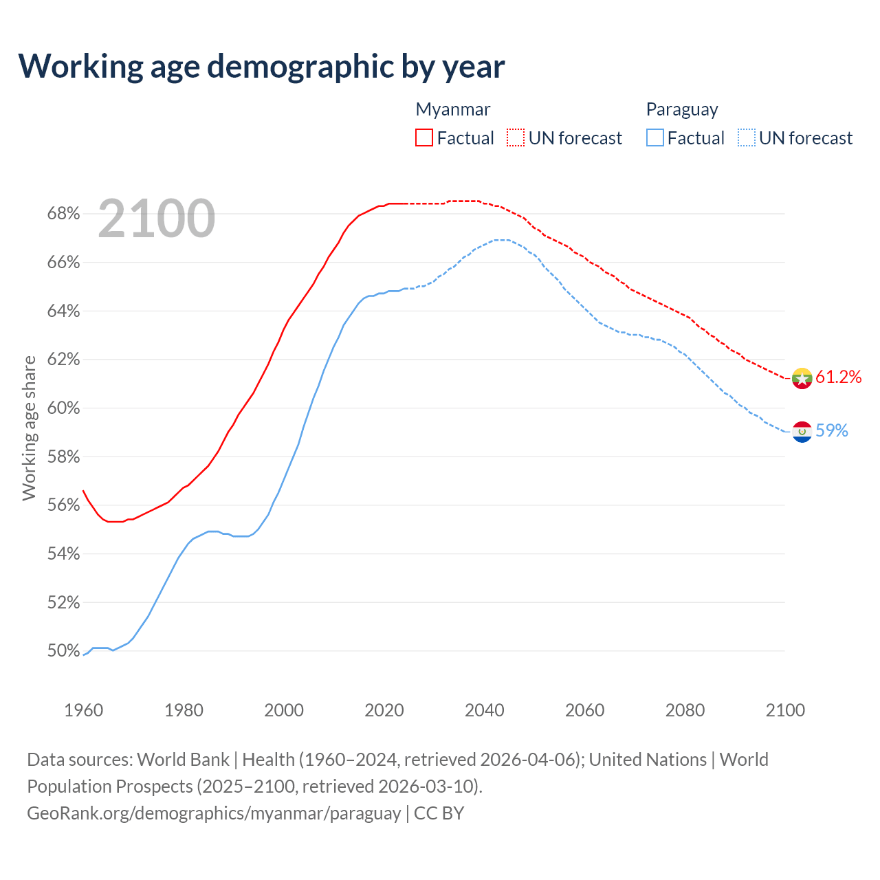 - Myanmar has 37.8M working age adults (aged 15-64) vs 4.62M in Paraguay.