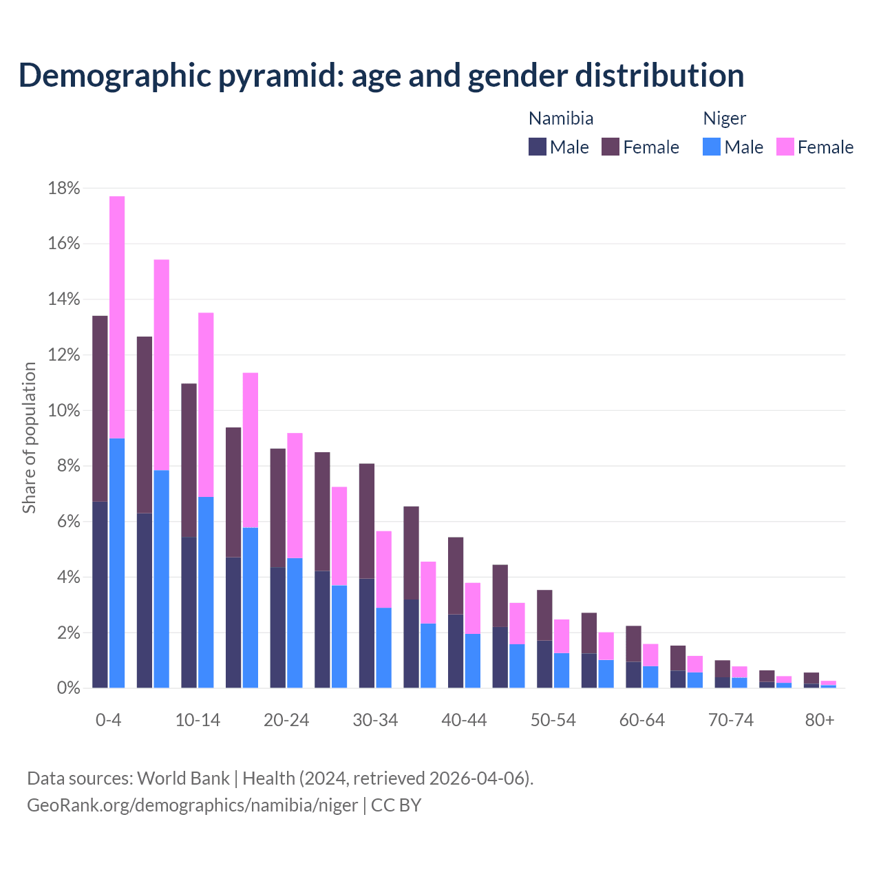 Demographics of Namibia compared to Niger:
