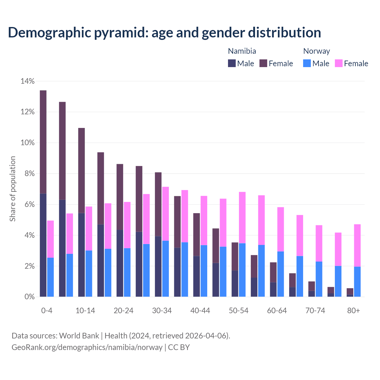 Demographics of Namibia compared to Norway: