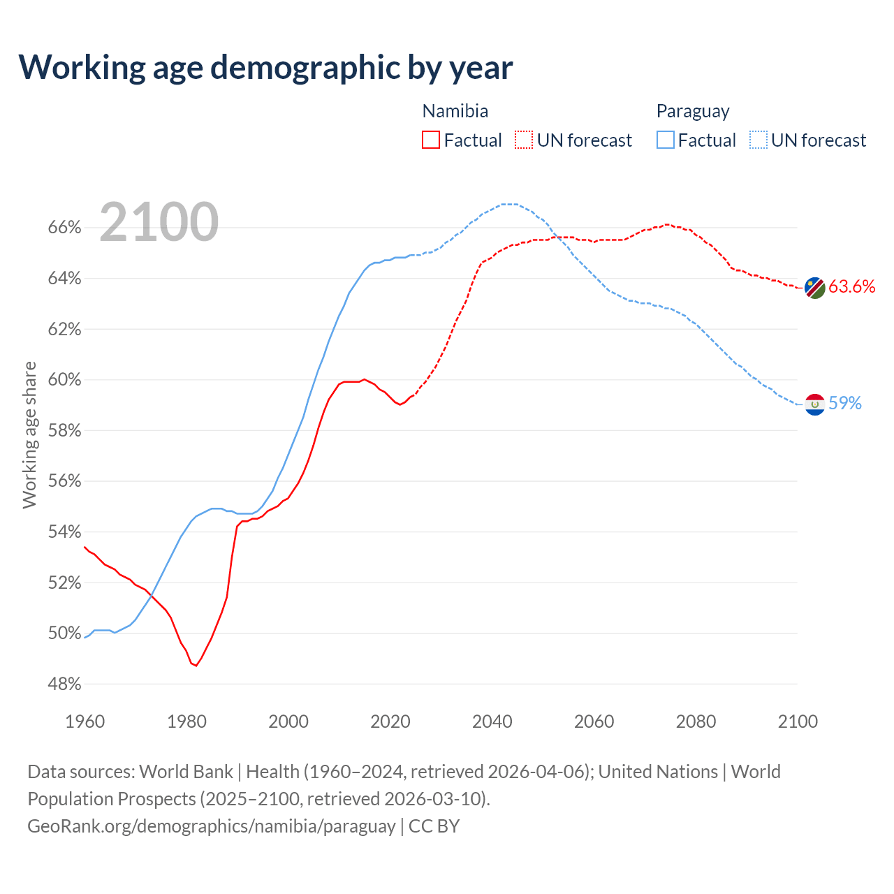 - Namibia has 1.88M working age adults (aged 15-64) vs 4.62M in Paraguay.