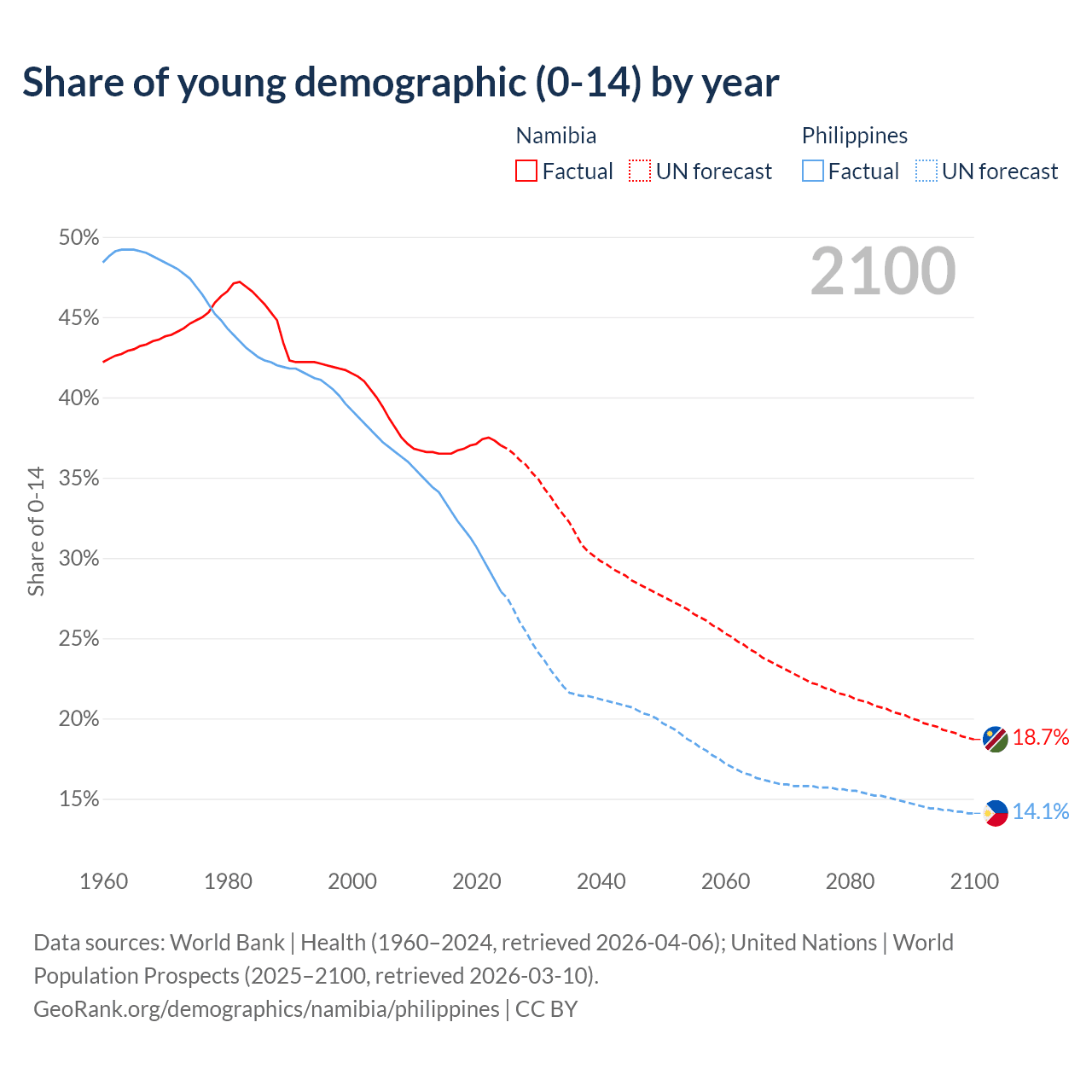 - The total fertility rate is 3.21 in Namibia compared to 1.92 in the Philippines.